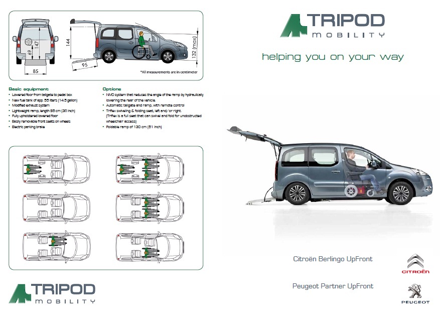 Siguiendo su amplia trayectoria sobre vehículos rebajados, Tripod junto con Navarra de Adaptaciones, le ofrece la posibilidad de conducir desde la propia silla de ruedas en Peugeot Partner y Citröen Berlingo.